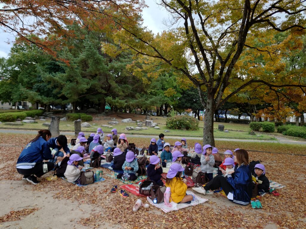 秋晴れの気持ちよい一日🍁年少・年中・年長の幼児組、欠席者なく全員そろって大型バスに乗り、福岡市動植物園へ遠足に出かけました🚌✨
