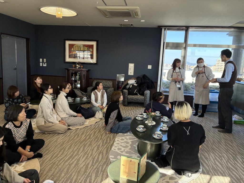 おもてなしの心をもってお互いにお茶を立て出し、一服いただきました。お菓子も大好評😋